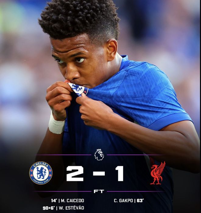 雷速体育10月5日讯 刚刚结束的英超第七轮的焦点战中,切尔西2-1战胜利物浦。比赛上半场凯塞多远射帮助蓝军首开纪录。下半场加克波接伊萨克助攻帮助利物浦扳平。比赛补时阶段,切尔西替补上场的埃斯特旺绝杀利物浦,送利物浦三连败。