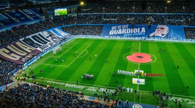 值得一提的是,本场比赛正是瓜迪奥拉执教生涯的第1000场比赛,阿提哈德球场摆起了巨大的TIFO,干向瓜迪奥拉致敬。