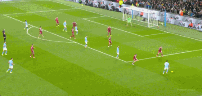 第29分钟,努内斯右路起脚传中,哈兰德高高跃起力压防守球员头槌破门,帮助曼城1-0打破场上僵局。