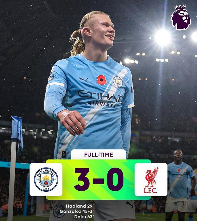 在主场球迷的欢呼声中,曼城3-0大胜利物浦,将上赛季英超冠军的颓势推向了近期的顶点!